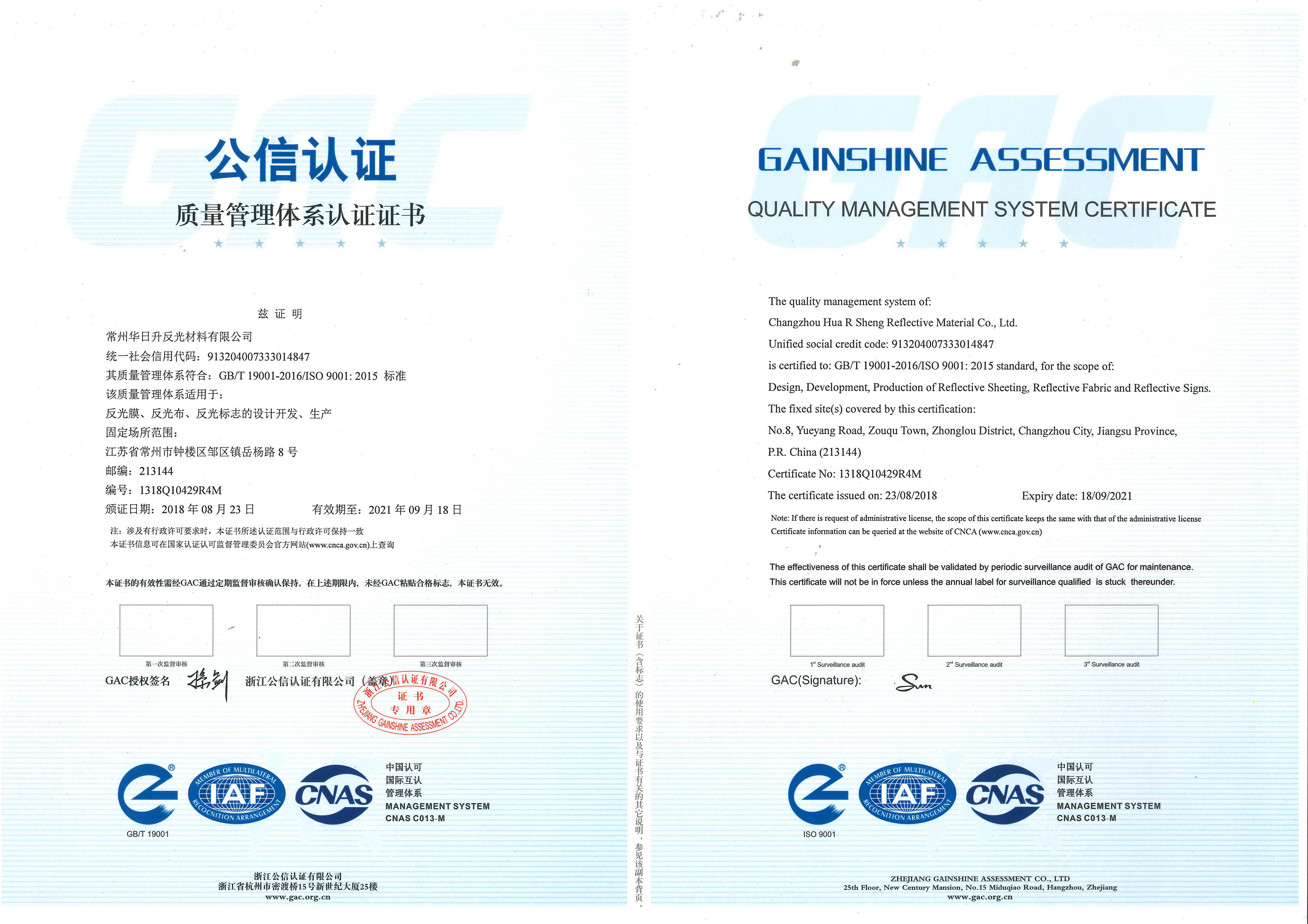 Changzhou Hua R Sheng Reflective Material Co., Ltd. is a professional enterprise engaged in design, production, and sales of reflective materials. Having received local and multi-national recognition for our high quality and innovative designs, our products have been exported to more than 100 countries.