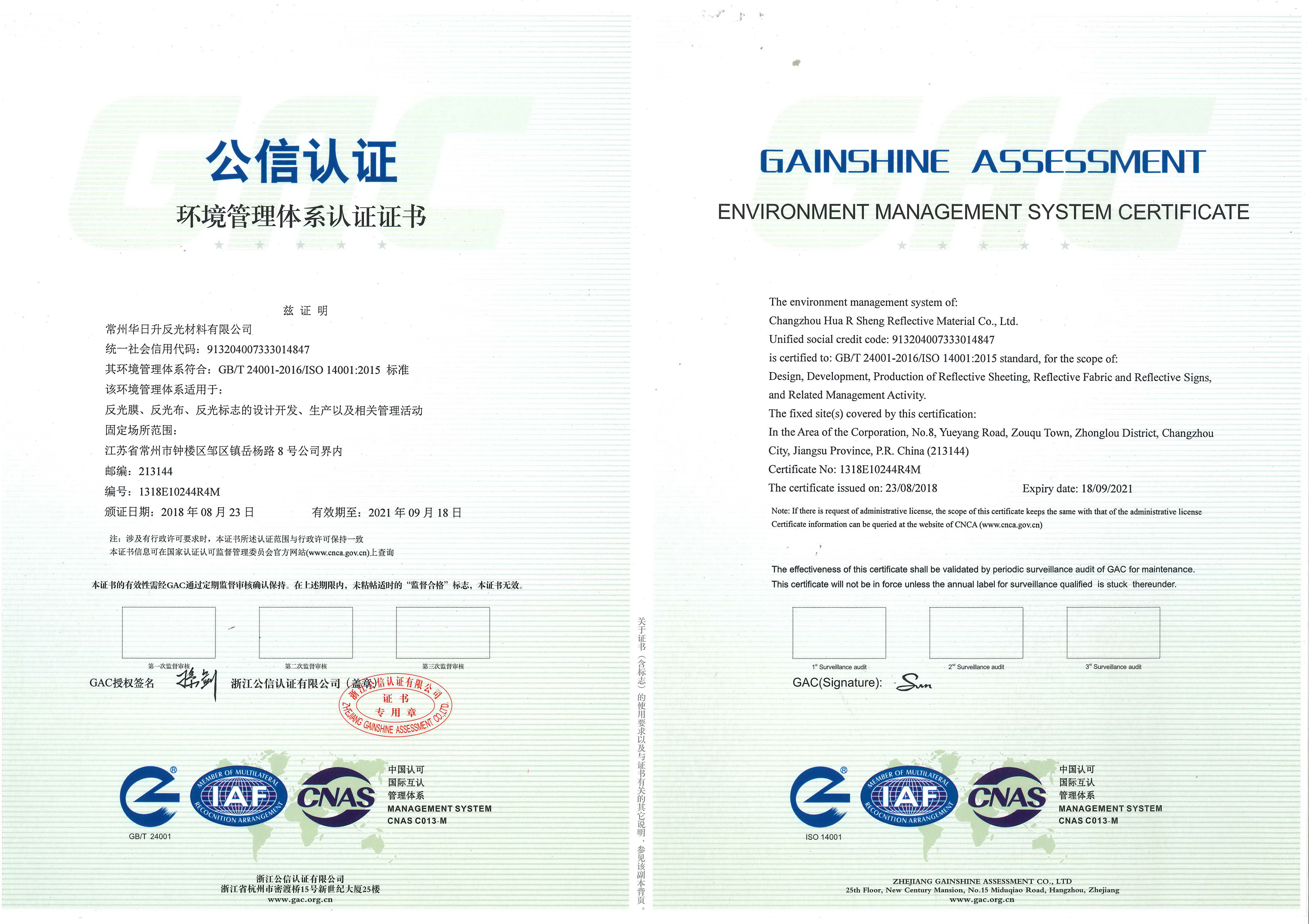 GAINSHINE ASSESSMENT(Environment Management System certificate)